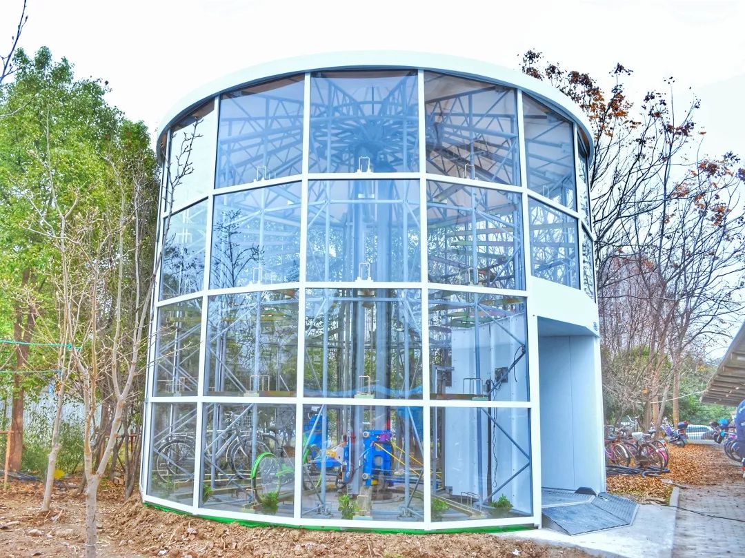自行车立体停车库采用模块化设计,将核心功能部件标准化,配有人脸识别交互系统和远程监控系统等功能。且建造时无需地基,可现场快速装配,便于市场投放,大大提升了自行车存取车的操作和使用体验。除此之外,还可根据设计层数的不同,设计不同数量的停车位,单个车库最多可容纳约250辆自行车。