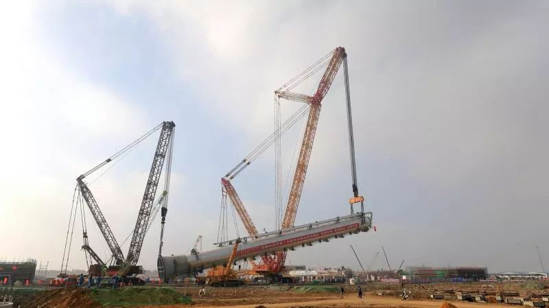 此次2号丙烯塔成功吊装,在中科炼化一体化项目工程建设中具有里程碑意义。据悉,在中科炼化一体化项目中80吨以上、60米以上大型设备总计319台,吊装运输总量达134763.8吨。中石化起运公司先后投入徐工4000吨、2000吨、1250吨履带起重机等大型起重机设备,全力支持中科炼化一体化工程建设,为打造世界级炼化基地提供有力保障。