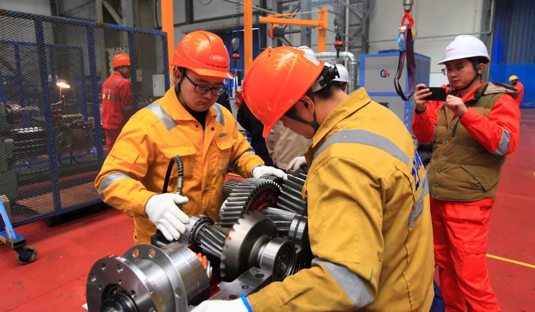 1月15日,振华重工首台通过流水线装配完成的减速箱在南通传动公司下线。