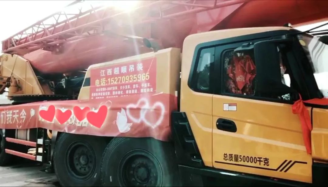 1月23日,南昌市新建县出现了一支壮观的三一起重机迎亲队伍,9台霸气的三一起重机挂着大红花,贴着“喜”字,拉着“今天我们结婚啦!”横幅,在街头上赚足眼球。