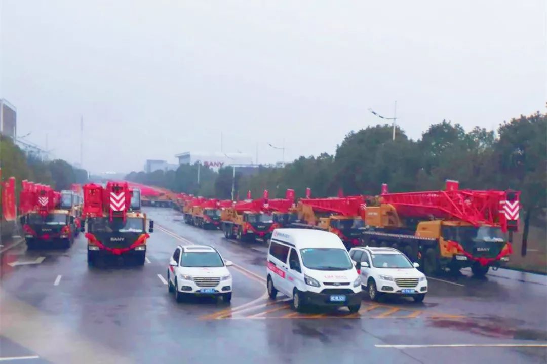 开工日, 44辆三一汽车起重机就驶出三一宁乡产业园的大门,发往河北、新疆、宁夏、陕西、广东等地,为新一年的全国基础设施建设作出贡献。