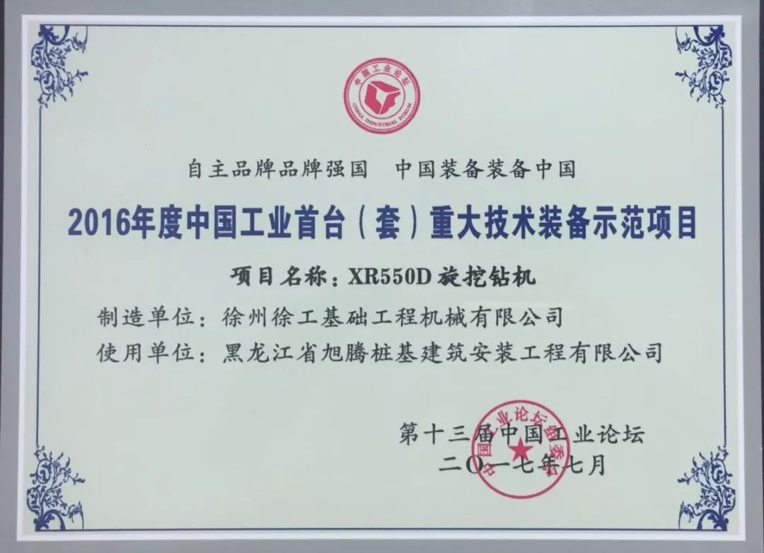 2017年徐工基础被工信部和中国工业经济联合会评为“制造业单项冠军示范企业”,是行业首批唯一获此殊荣的企业。