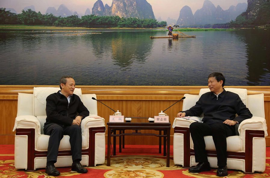 广西壮族自治区副主席费志荣在南宁会见了王民董事长