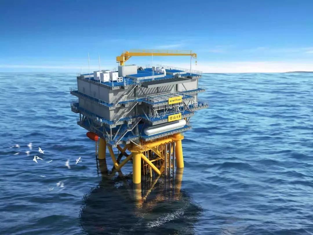 岱山海上升压站采用三层布置,平面尺寸约为34.2米×42.0米,最高点距平均海平面约32米。振华重工负责该项目生产设计、陆地建造与安装调试、整体装船运输、海上吊装(灌浆和焊接)以及海陆联调交付等工作。