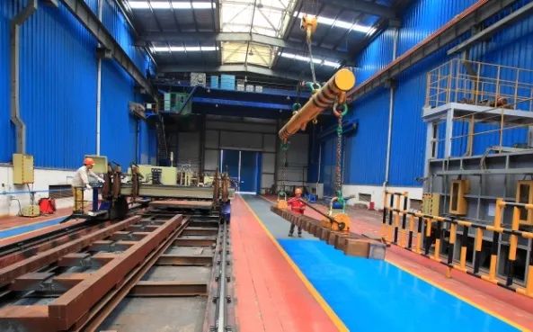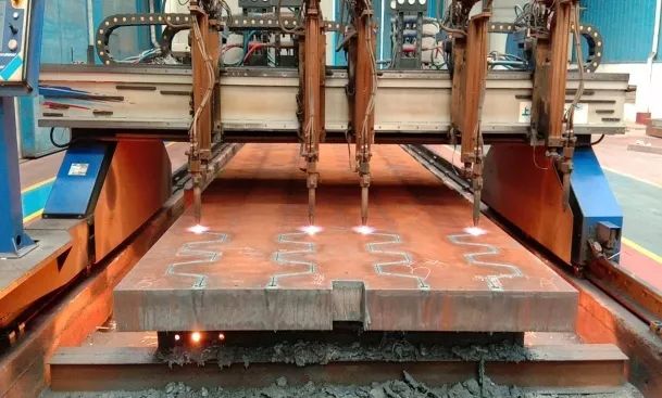 该风电安装船桩腿分80米和20米活动桩腿两种部位,组成桩腿的齿条共208根,按长度分有3米、4.5米、8.2米和9米四种规格。钢板到厂后,将进行报验、切割、拼装、焊接和淬火等一系列工艺处理。