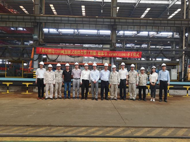 6月6日, 振华重工为上海打捞局建造的1200吨插桩式抢险打捞工程船项目在海工集团启东海洋公司顺利举行开工仪式。