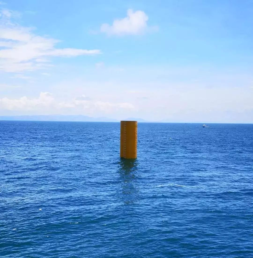 此次施工的单桩桩重1550吨、直径8.4米、桩长96米、法兰直径7.5米,可称为全球第一桩。由于南鹏岛海域常年涌浪较大且海底地貌复杂,此次阳江项目首桩施工挑战空前。