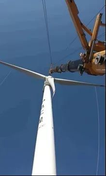 第二日傍晚,轮毂所有螺栓全部拆除,笔直的大臂开始回转,带着几十吨的轮毂和上百米长的扇叶,脱离了机舱主体,缓缓下降,吊装成功!