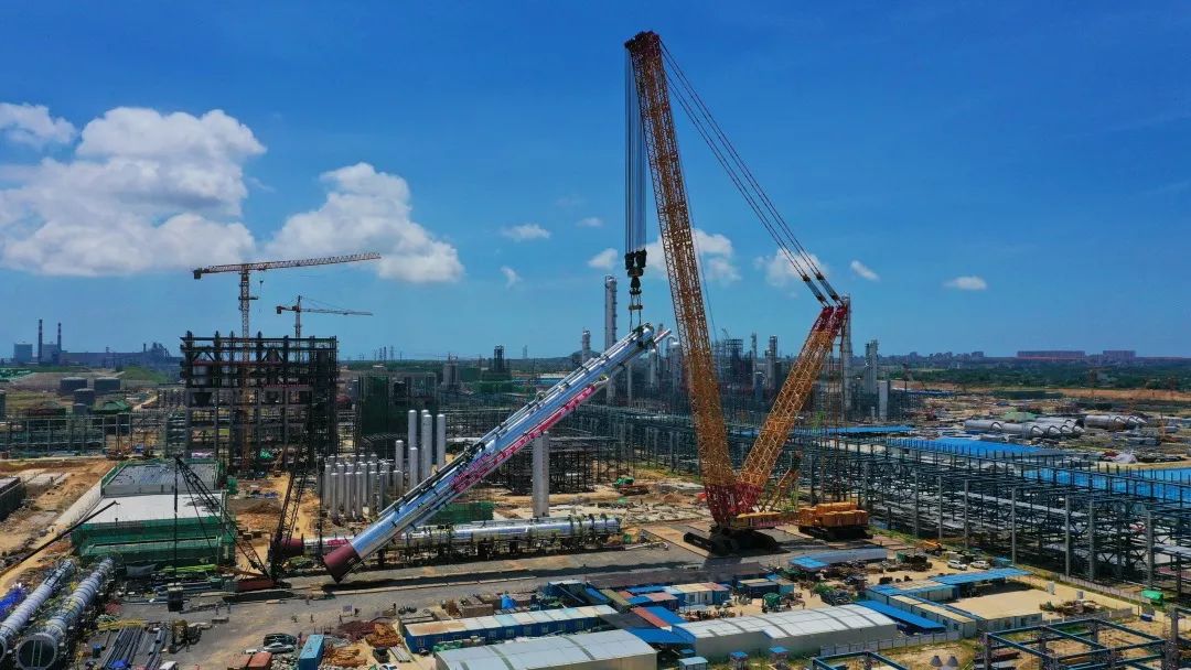 今年年初,“世界第一吊”在海岛炼化项目执行首吊任务——挑战设备体积最大、高度最高、吊装难度最大、吊装要求最高的千吨级乙烯2号丙烯塔吊装。