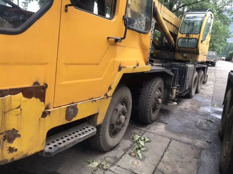 贵州贵阳,1985年出厂的QY25A走过那么多坑坑洼洼的道路,底盘不翘脚,十分地砸实,主要用于大型配件、部件,以及铁路车皮吊装,基本臂吊重仍能稳稳吊起25吨重量