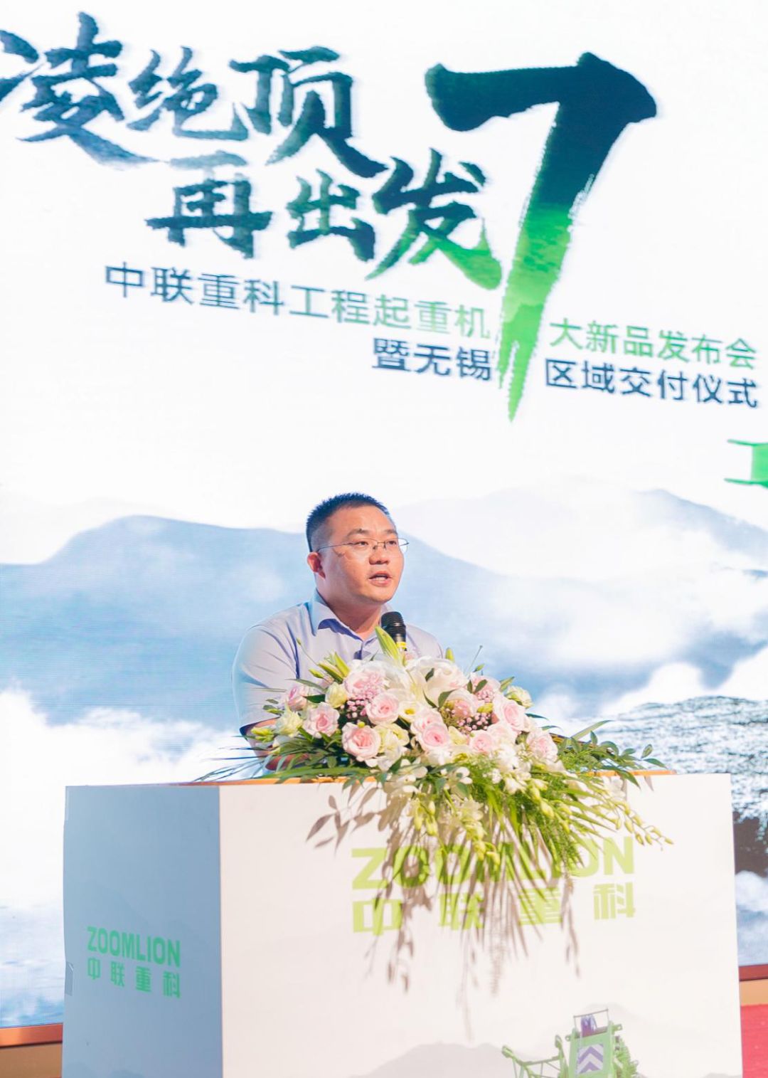 ▲中联重科工程起重机公司营销总监唐启辉代表公司致辞
