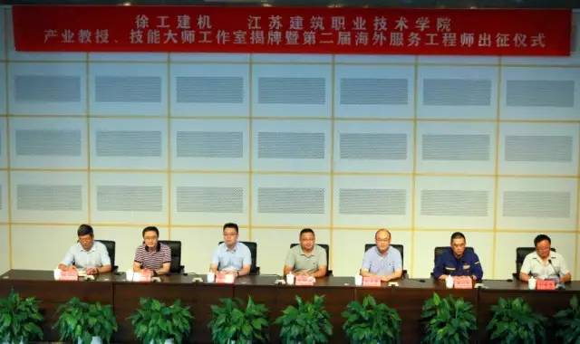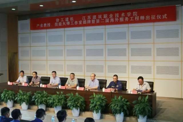 7月2日,徐工建机、江苏建院技能大师、产业教授工作室揭牌暨徐工建机首届、江苏建院第二届海外服务工程师出征仪式在江苏建院图书馆报告厅成功举办,公司总经理陈卫东,党总支副书记李红飞,江苏建院副院长蒋兆峰,智能制造学院党总支书记刘盛贤,智能制造学院院长仇文宁,全国技术能手,江苏省技能大师工作室领办人李戈,以及公司相关部门负责人参与此次出征仪式。