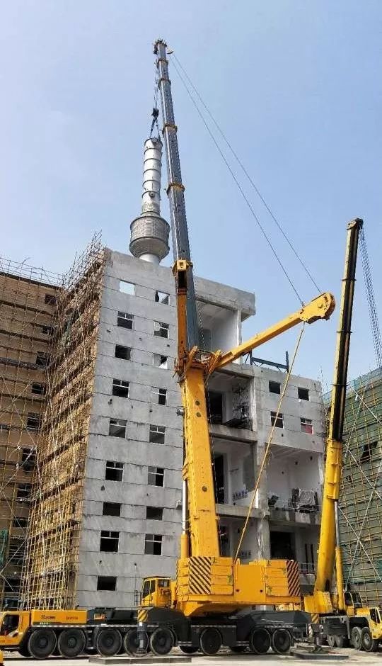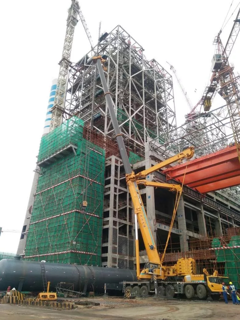 在江西“十三五”规划重大工程项目新余市分宜县发电厂施工现场,XCA550吊起88吨的水循环,发电机组等设备,“力拔山兮气盖世”。