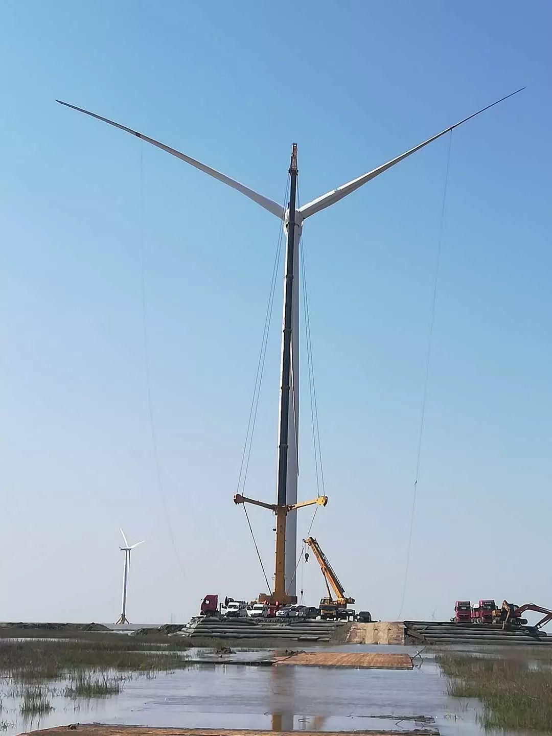 在启东华尔瑞海上风电场(江苏“海上三峡”项目之一),QAY650A“展翅腾飞”携手“小弟”QY75K完成高精准度、高稳定性风电安装。