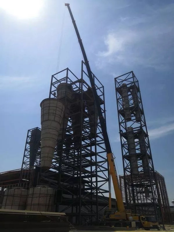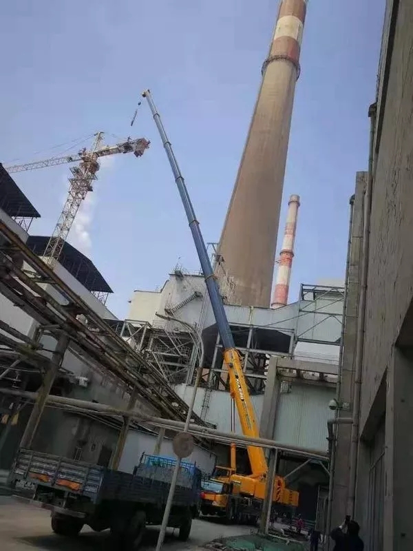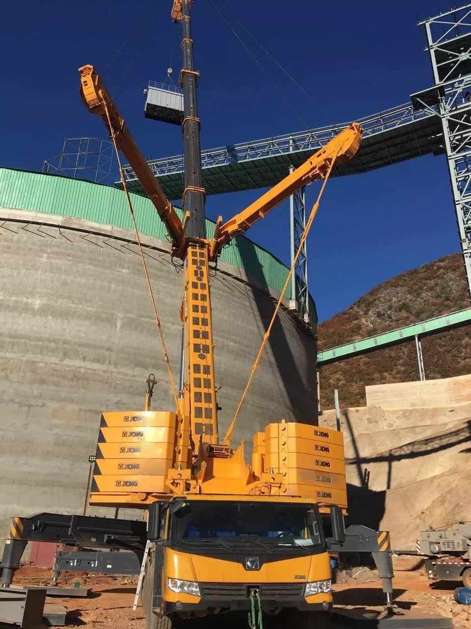 同样,在云南蓝天的见证下,XCA450在水泥厂吊起4~5吨的箱体,吊装幅度40米,完美完成高难度吊装任务。