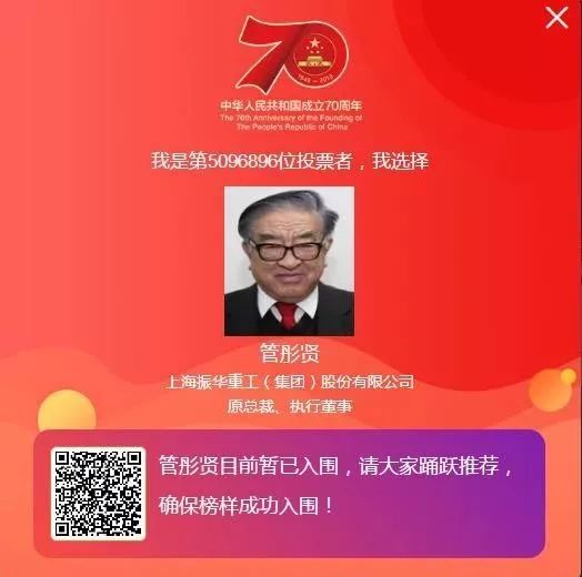 管彤贤,在59岁即将退休时创业,带着一股不服输的劲儿,将公司取名为上海振华港口机械有限公司。他以“振兴中华、为国争光”为己任,埋头创业、创新,带领公司飞速发展,击败了诸多国际强手,从最大的集装箱机械进口国,变成最大的出口国,公司“ZPMC”的铭牌标注在大部分港口上。如今,公司产品已进入全球第102个国家和地区,港机产品已连续21年全球市场份额占有率第一,其中,岸桥产品近十年来连续占据70%以上的全球市场份额。