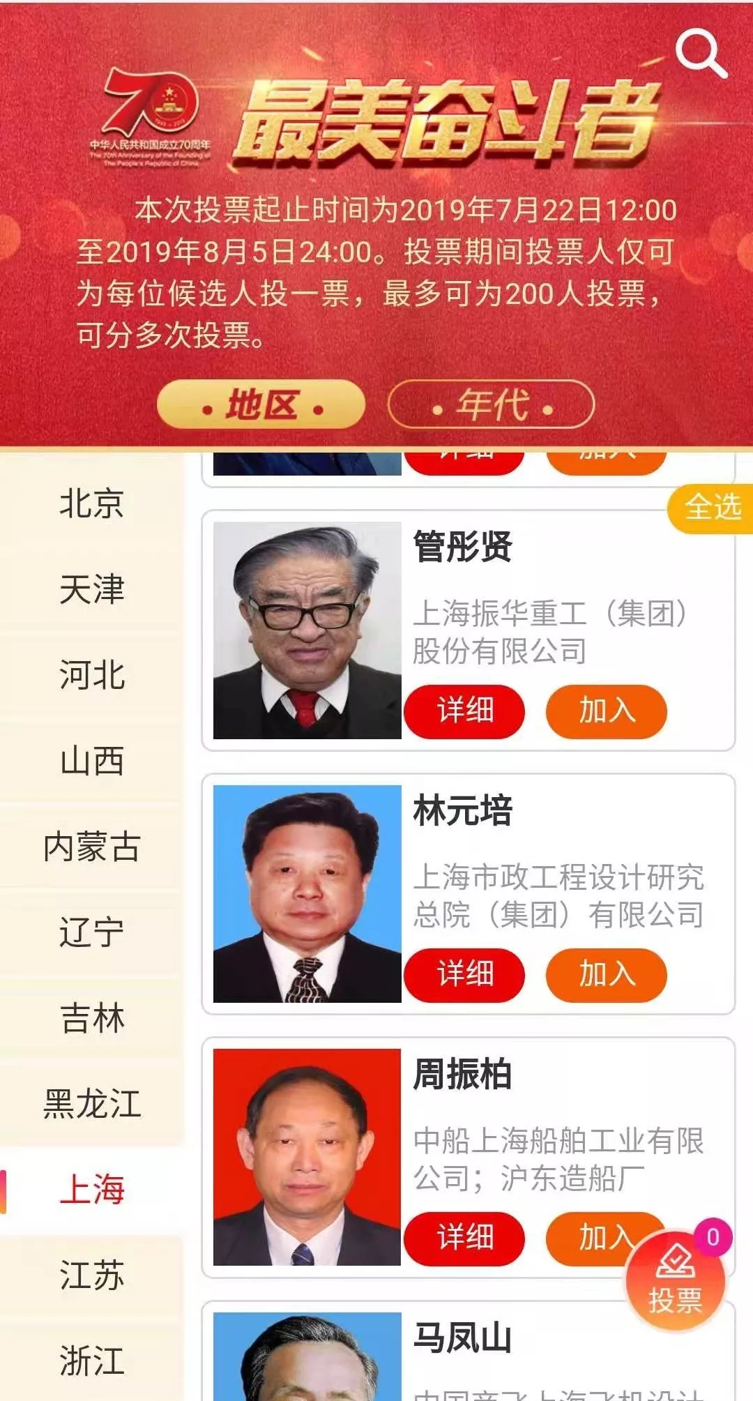 为隆重庆祝中华人民共和国成立70周年,大力弘扬“幸福源自奋斗、成功在于奉献、平凡造就伟大”的价值理念,多部委联合组织开展“最美奋斗者”学习宣传活动。将从全国各地各有关部门推荐的722名候选人中,通过群众网络投票,在综合考虑地域、行业、民族等因素的基础上,确定240名左右的“最美奋斗者”候选人初选名单,最终研究提出200名中华人民共和国成立70年来各地区各行业各领域涌现出来的,来自生产一线、群众身边的先进模范。