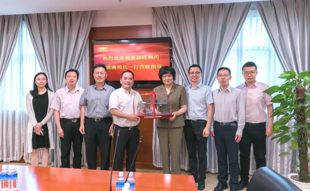 7月22日,商务部欧洲司司长周晓燕一行调研公司。公司总裁、党委副书记黄庆丰出席接待。