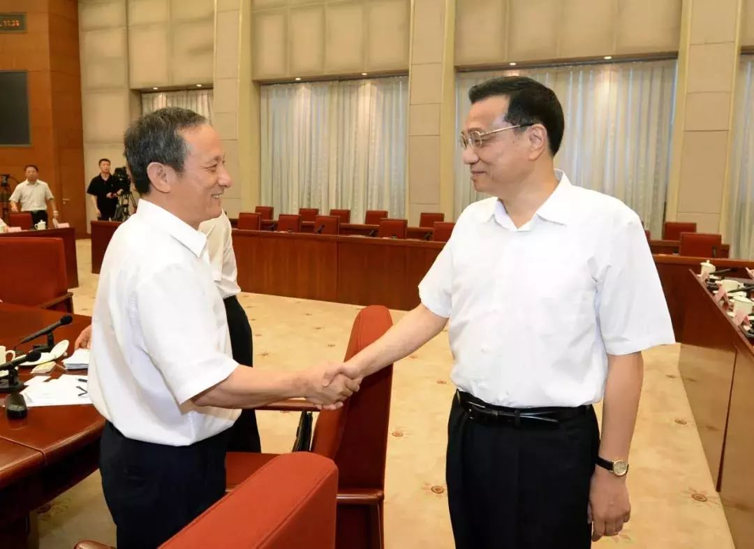 2013年7月16日,首都北京,李克强总理与王民亲切握手