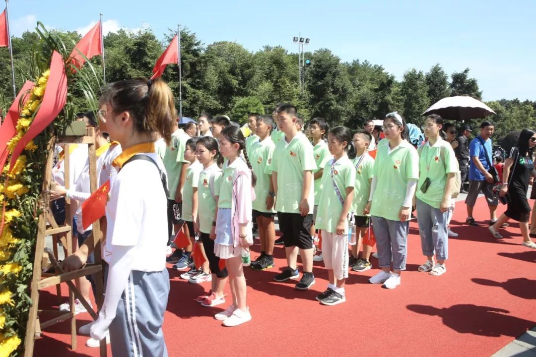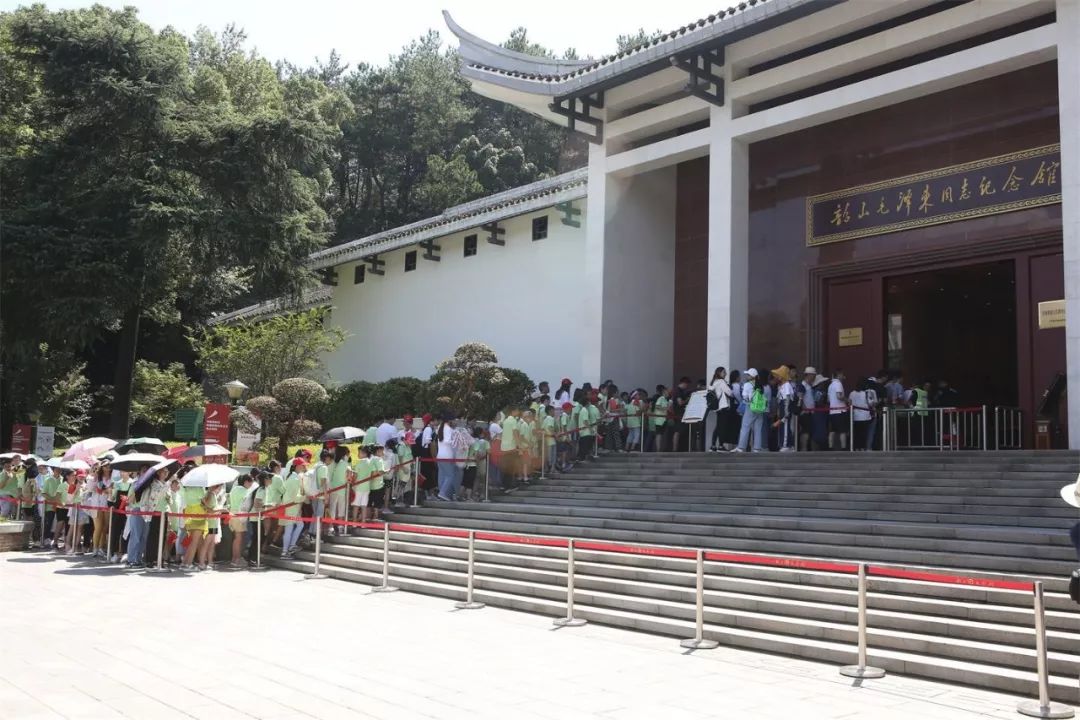 小营员们烈日下秩序井然排队参观毛泽东同志纪念馆