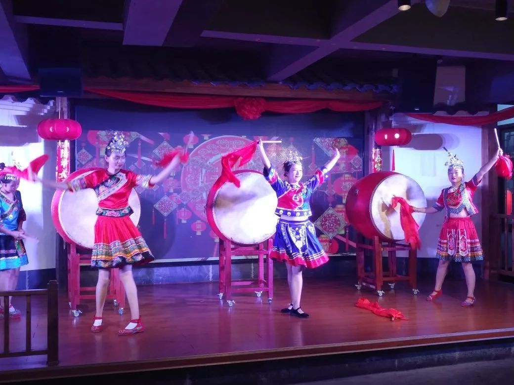 晚间,小营员们前往了美丽神秘的张家界,极具当地特色的鲵宴餐厅、热情的苗族歌舞与击鼓表演令小营员们很是难忘。