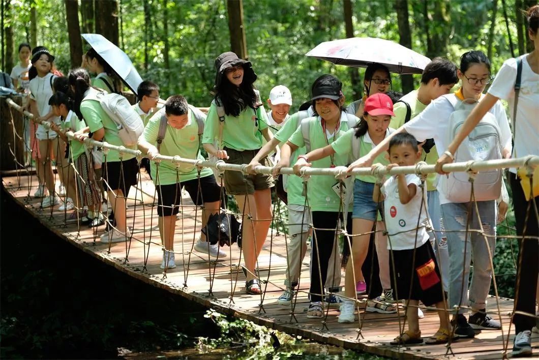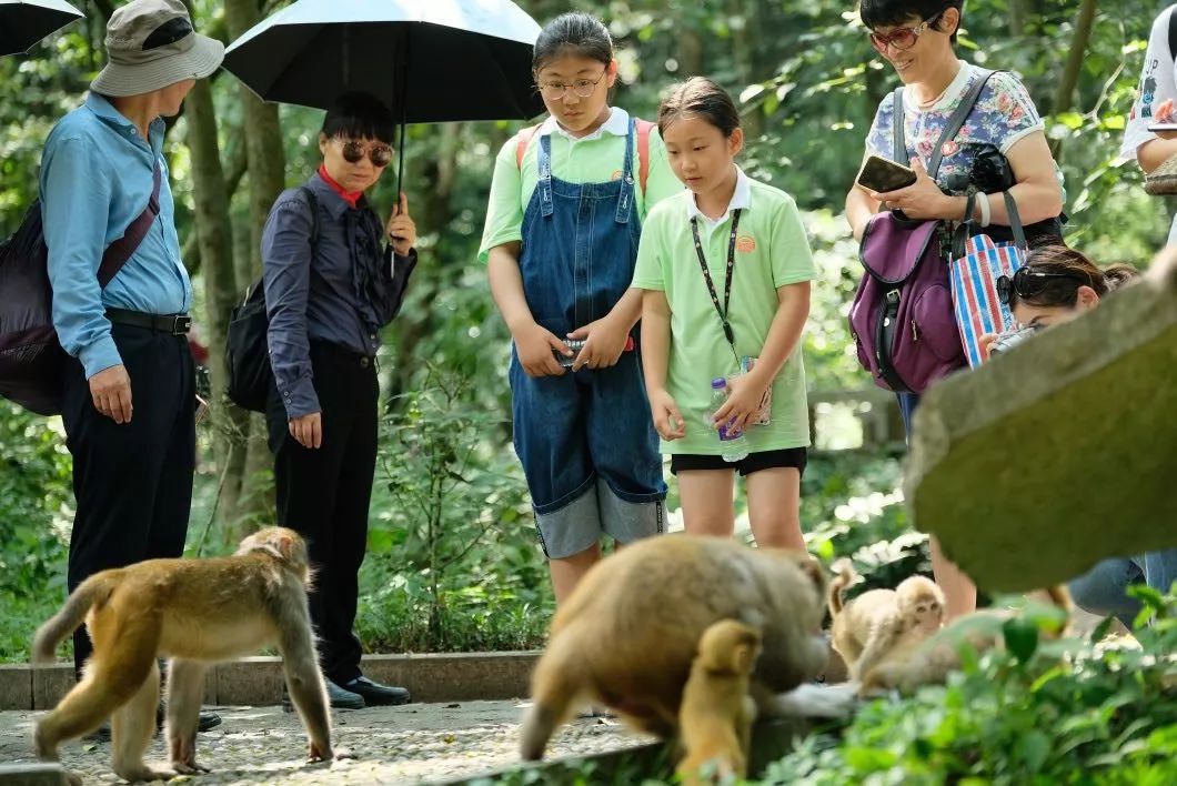 金鞭溪景区内,小营员们与山间猴子亲密接触、体验特色吊桥,感受林间美景。乖巧可爱的猴群穿梭于树木与地面之间,时而走向小营员们等待投喂,时而打闹嬉戏,很是惬意。摇晃的吊桥则引得小营员们笑声连连,沉浸于山间美景的同时也收获了别样的快乐。晚间,小营员们一同欣赏了极具当地特色的《魅力湘西》主题表演,宏伟壮观的场面、精彩的表演,令小营员们惊叹连连、目不暇接。