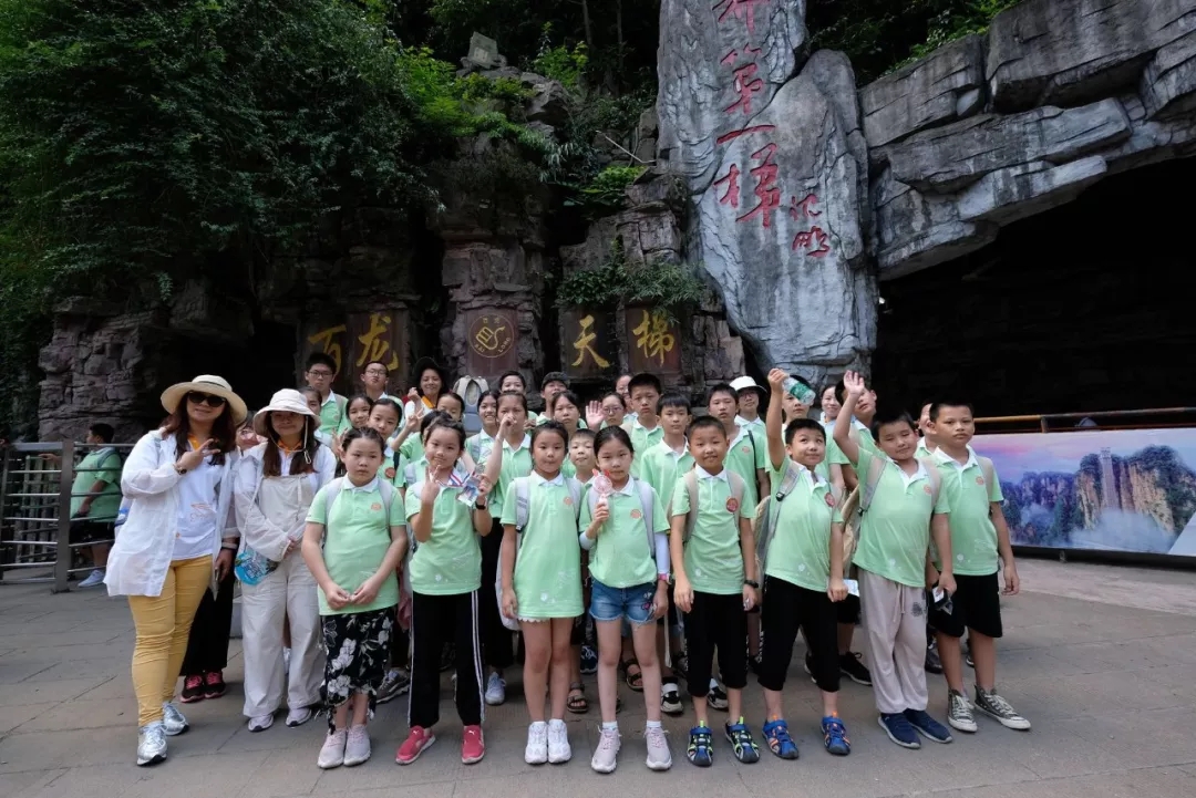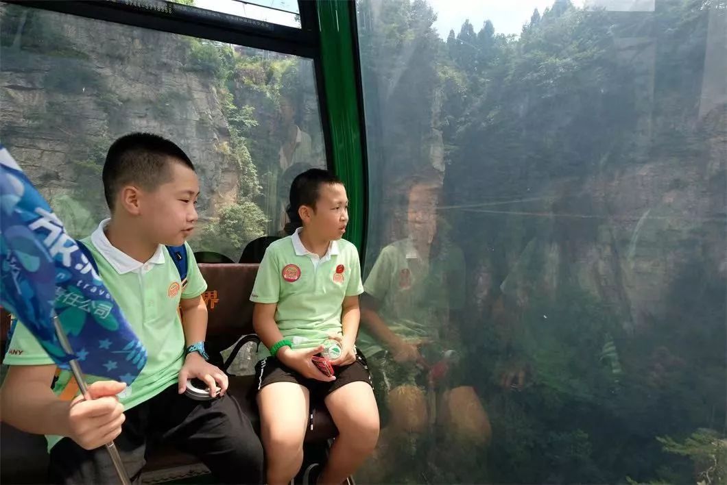 行程的最后一天,小营员们来到袁家界景区,乘坐索道饱览天子山美景,凌驾绝壁的仙人桥、峭立云端的御笔峰、天女散花都令小营员们啧啧称奇,随后在最高户外电梯-百龙天梯的引领下,山间美景尽收眼底。十里画廊的奇峰异石在缓缓前行的小火车带动下跃然眼前,大自然的鬼斧神工令小营员们赞叹不已。