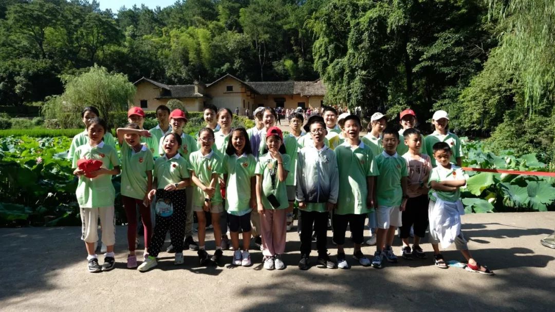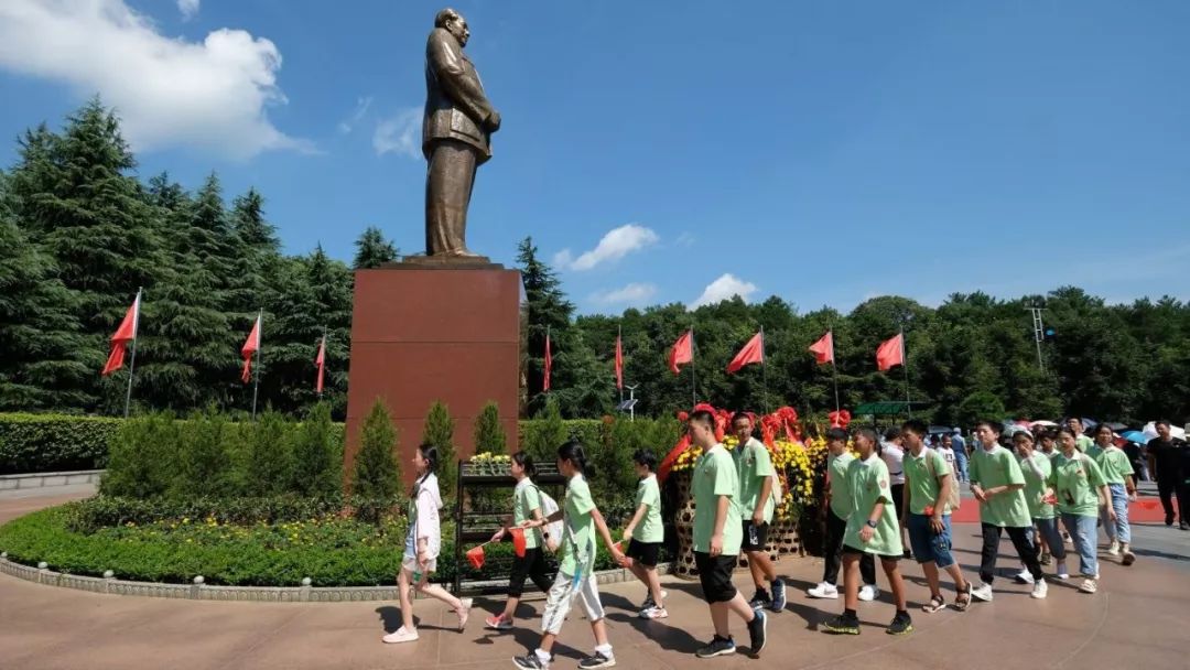 此外,由革命圣地韶山展开的红色之旅也是此次活动不可忽略的点睛之笔。在导游们的带领下,小营员们一同参观了毛泽东故居,了解了毛主席“十三伢子”绰号的由来、见证了伟人的成长历程与革命事迹、在古墙红砖中探寻伟人足迹。随后,一同在毛泽东铜像广场向毛主席敬献花篮,感受红色文化熏陶。