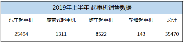 根据中国工程机械工业协会工程起重机分会对起重机生产企业进行的数据统计,2019年上半年的起重机销售数据已出炉,汇总成一张表格: