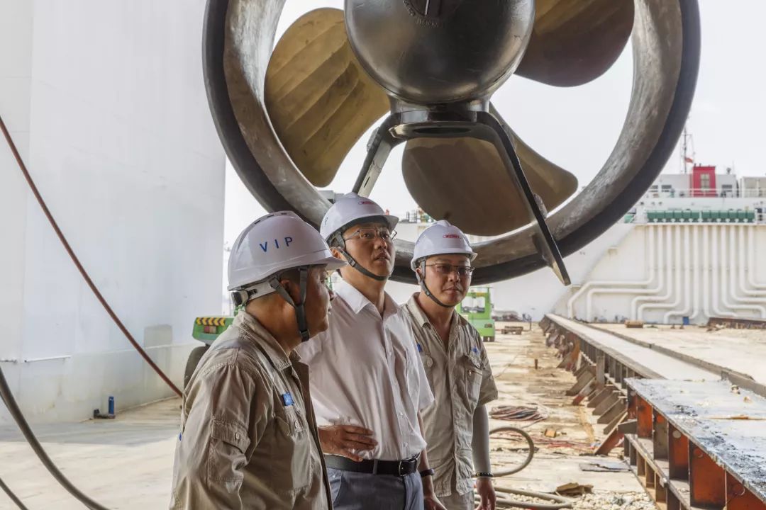 中交三航局副总经理王伟明、公司总经济师李瑞祥,以及中国船级社相关负责人等出席下水仪式。