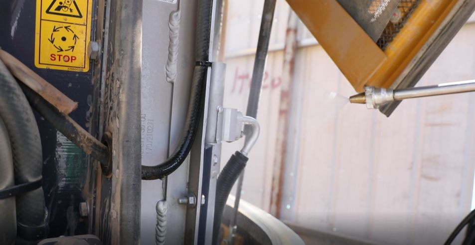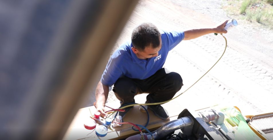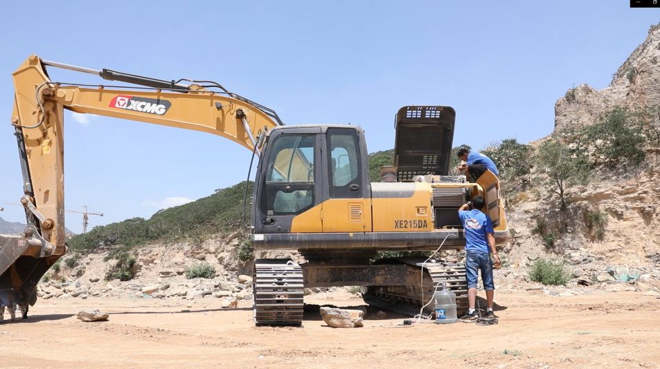 顾不得寒暄,两位服务人员马上开始清洗水箱、检修空调,对驾驶室进行清洁,确保用户在驾驶过程中不受炎热之苦。同时,对XE60D挖掘机进行整车保养,为客户讲解基本操作知识,确保客户在接下来的施工中安全无忧。