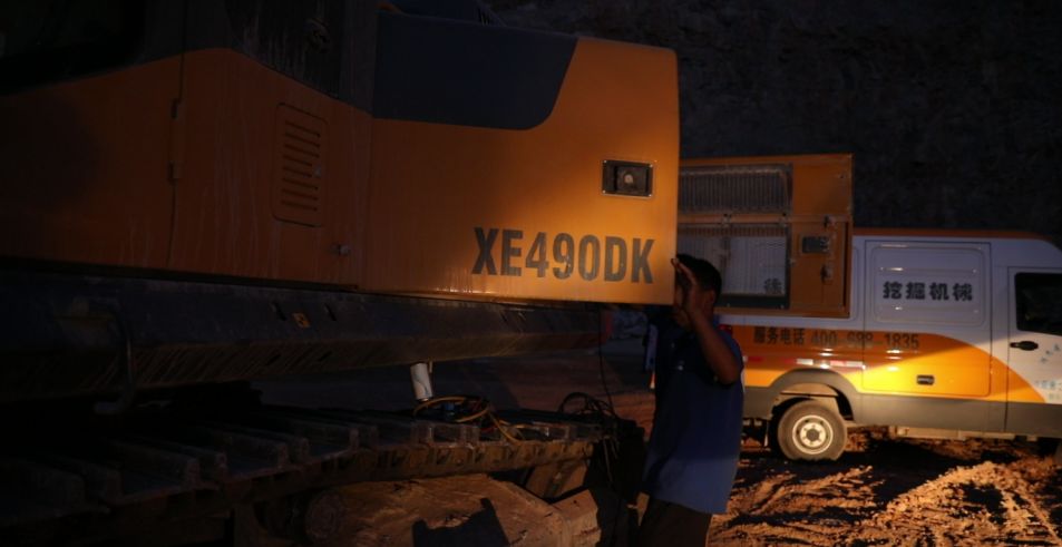 四周苍茫寂静,当其他人享受家的温暖与安宁时,徐工挖机的服务却未曾打烊。夜间光线暗,服务人员只能借助车辆的大灯照明开展设备保养工作。夜间工作难度较大,维修人员容易发生磕碰、擦伤,但为了确保客户白天的作业照常进行,徐工服务人员克服了重重困难,坚持下来的夜间养护也成为特色,而这无疑为徐工建立当地口碑和铺开市场奠定了基础。