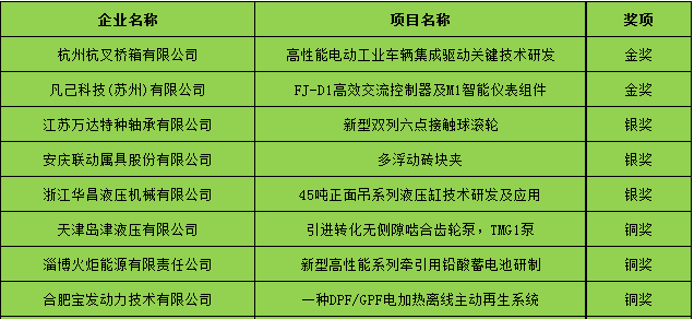 参与本届创新奖评选活动的企业共20家,申报项目为25项,包括关键零部件创新、智能化产品、互联网应用、新能源等新技术。参评企业代表按照抽签顺序依次对申报项目进行详细介绍,重点针对产品技术方向、产品创新性、行业代表性、产品成效性、市场发展潜力等方面进行阐述。12位评委针对参评项目进行现场提问和打分。经专家评委组打分和讨论,最终确定获奖名单如下: