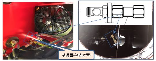本案例正是因为节温器脱落后,三通接口变为常开,高温的刹车油不通过散热器而直接回到刹车油箱,刹车油得不到有效冷却,在高温天气,机车用量较大时就会出现刹车油温高报警。