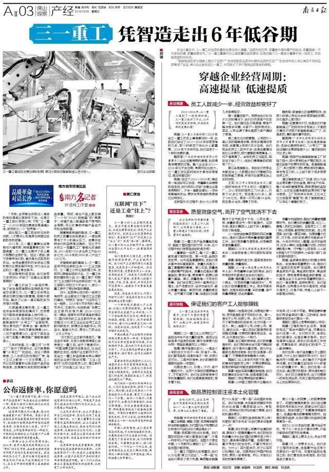 陈爽:经过了2011—2016年,确实有一些经验可以总结。用董事长梁稳根的话来说,我们深刻认识到“经营企业是有周期的”。不会一直都在增长,一定会有高峰和低谷,要学会用思维和思想适应这种变化。