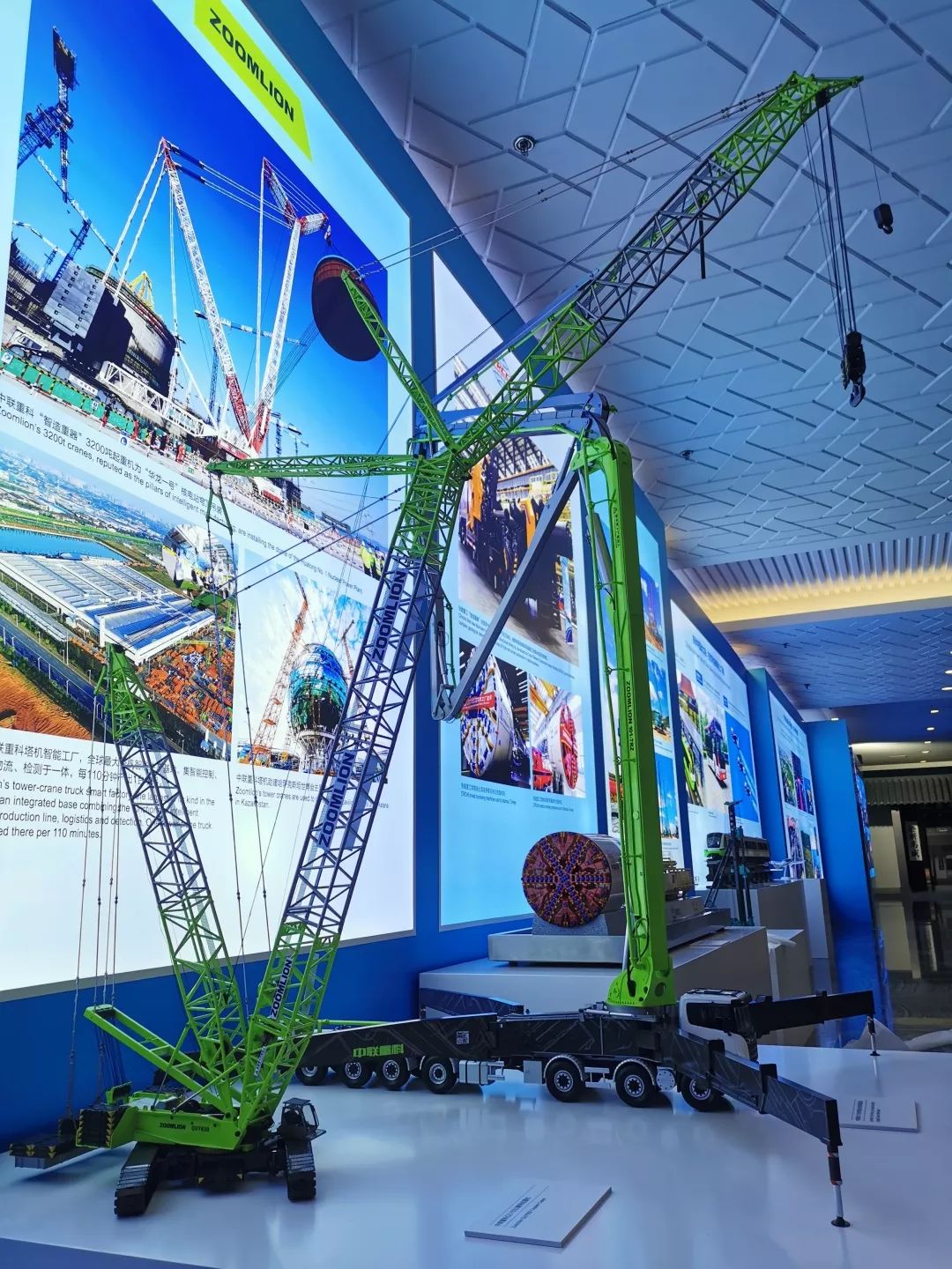 ▲中联重科101-7RZ 碳纤维臂架泵车、650吨履带式起重机模型亮相推介会