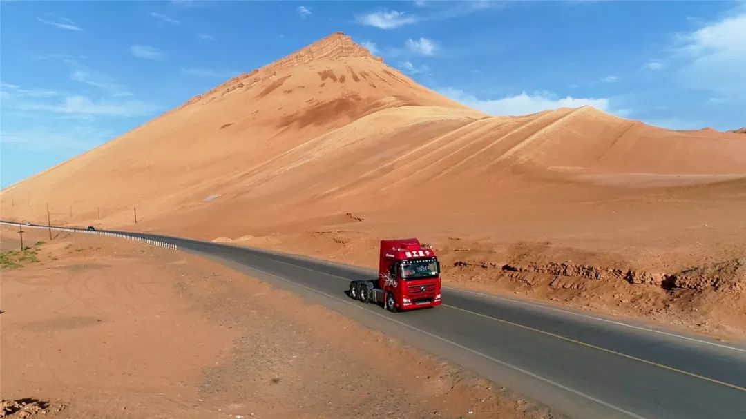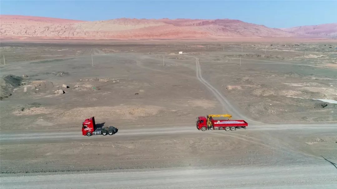 吐鲁番,位于新疆中部。因其日照充足、高温、降雨稀少且大风频繁,故有“火州”之称。吐鲁番夏季极端气温可达49.6℃,地表温度可达80℃,因此这里成为检验车辆高温适应性的最佳场地。本次徐工重卡高温试验车队由漢風G7国六牵引车和漢風G5国六随车吊组成。