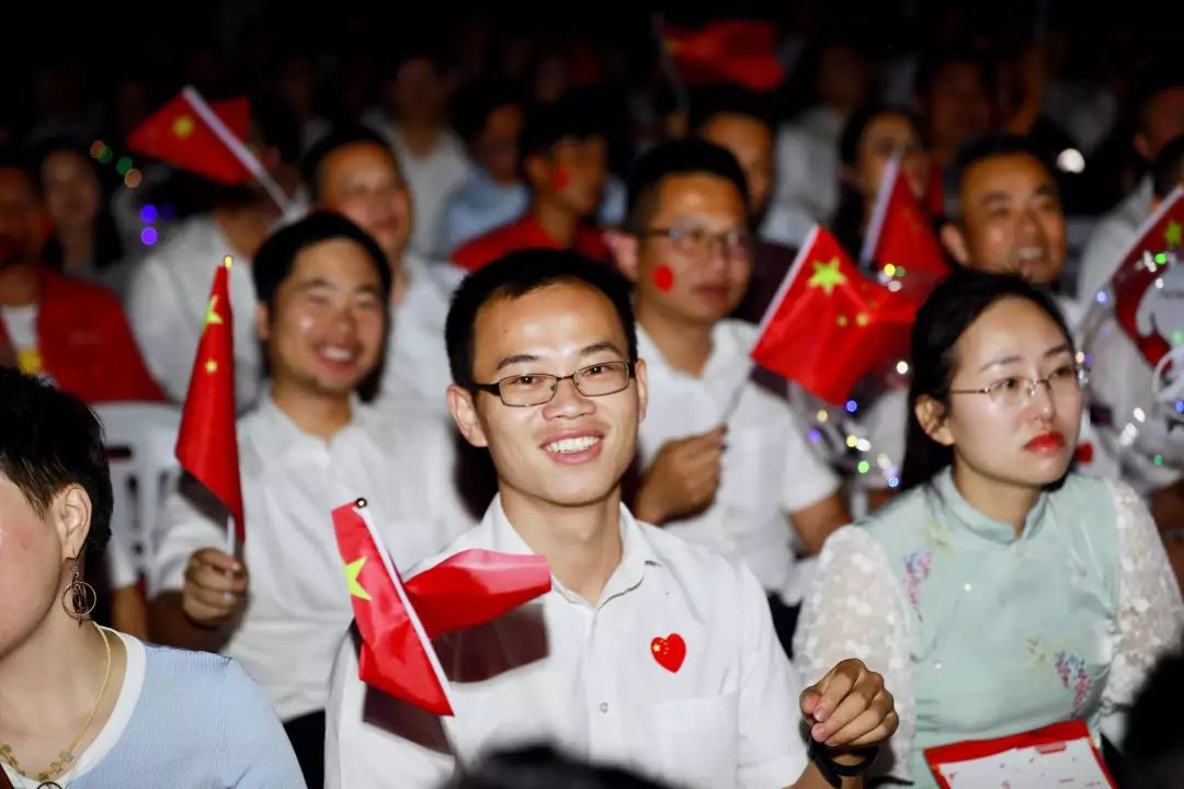 情到深处,梁稳根提议到场的各位,用最洪亮的声音喊出一句“祖国万岁”,祝福祖国母亲生日快乐!一片叫好中,全场齐声呐喊“祖国万岁”,响彻全城。