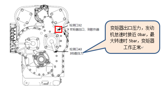 根据变速箱工作原理,变矩器输出的高温油液经过散热器的冷却后,最终与用于润滑的油液汇合,一同返回变速箱油底壳。变矩器输出压力和流量的大小也会影响变速箱油散热效果的好坏。因此,需要检查变矩器的输出压力是否正常。