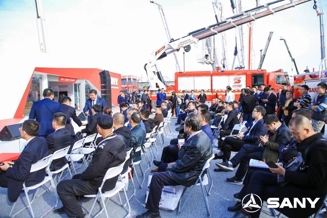 41米重型粉剂高喷消防车此外,55米登高平台消防车、高机动多功能消防车、全地形无人救援平台、水域救援成套装备等顶尖消防产品也将即将悉数亮相本届消防展,为目前的应急救援事故提供解决新思路。//现场活动目不暇接//顶尖科技的面世一定要配备吸引眼球的发布会。展会现场,三一的舞台可谓是精彩不断。漂亮的“消防宝贝”们率先热舞开场,点燃了全场观众的激情。紧接着,三一应急装备研究院高喷产品研究所所长徐国荣详细讲述了大跨度举高喷射消防车的尖端科技,三一集团副总裁谢志霞拉下红绸,多位消防“新贵”也正式与大家见面。