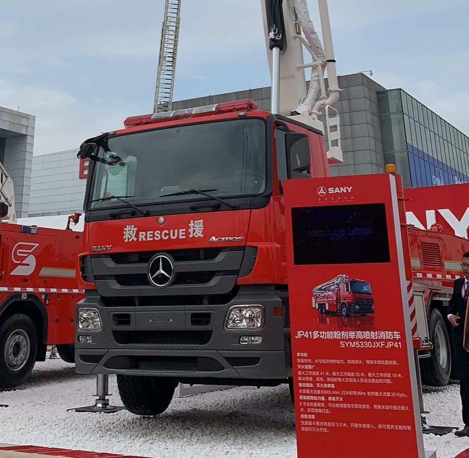 现场设备一览国内首台针对国六排放法规的大跨度举高喷射消防车、41米重型粉剂举高喷射消防车等设备均于16日下午发布上市。据三一应急装备研究院高喷产品研究所所长徐国荣介绍,“这款由三一重工自主研制的新一代国六48米大跨度举高喷射消防车是全国首个满足国六排放法规的消防产品,它拥有大跨度全折叠臂架,可实现360度精准灭火,有效破解了市中心、老城区,大型商超等现代城市消防难题。”