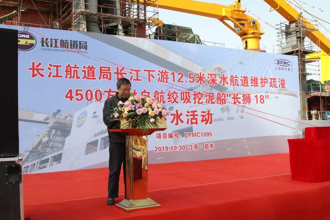 10月30日,振华重工为长江航道局建造的4500方/时自航绞吸式挖泥船“长狮18”在海工集团启东海洋公司隆重举行下水仪式。