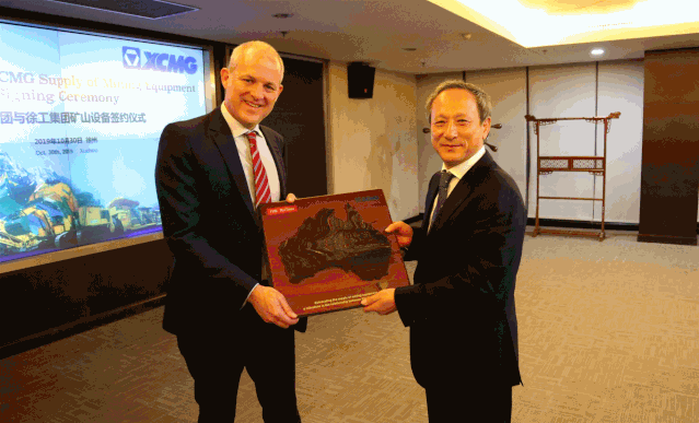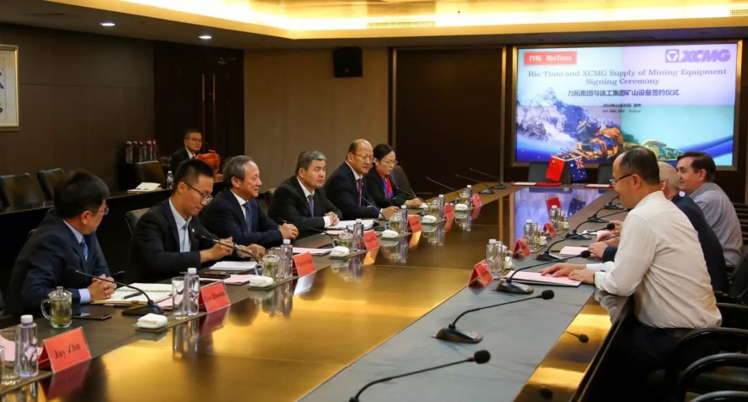 继十月初徐工力压群雄收到全球知名矿业巨头力拓集团的中标通知后,10月30日,力拓集团全球采购副总裁Mark Davies等一行专程来到徐工进行签约、走访。