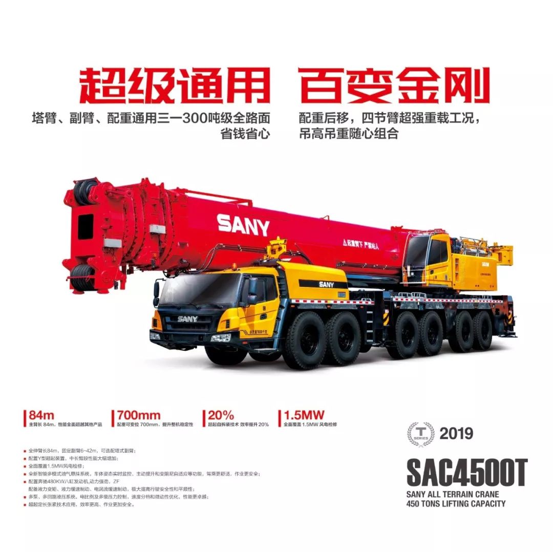 SAC4500T的实力,不止如此,它的塔臂、副臂、配置与三一300吨级的全路面起重机实现通用,对老用户来说,轻轻松松就省出了几十万的附件费用。它拥有可变位配重,能后移700mm,吊载更加稳定。而且,它设计了可拆卸5/6/7节臂的4节臂工况,可以满足中短臂段超大重量的吊装要求,吊高吊远不在话下。