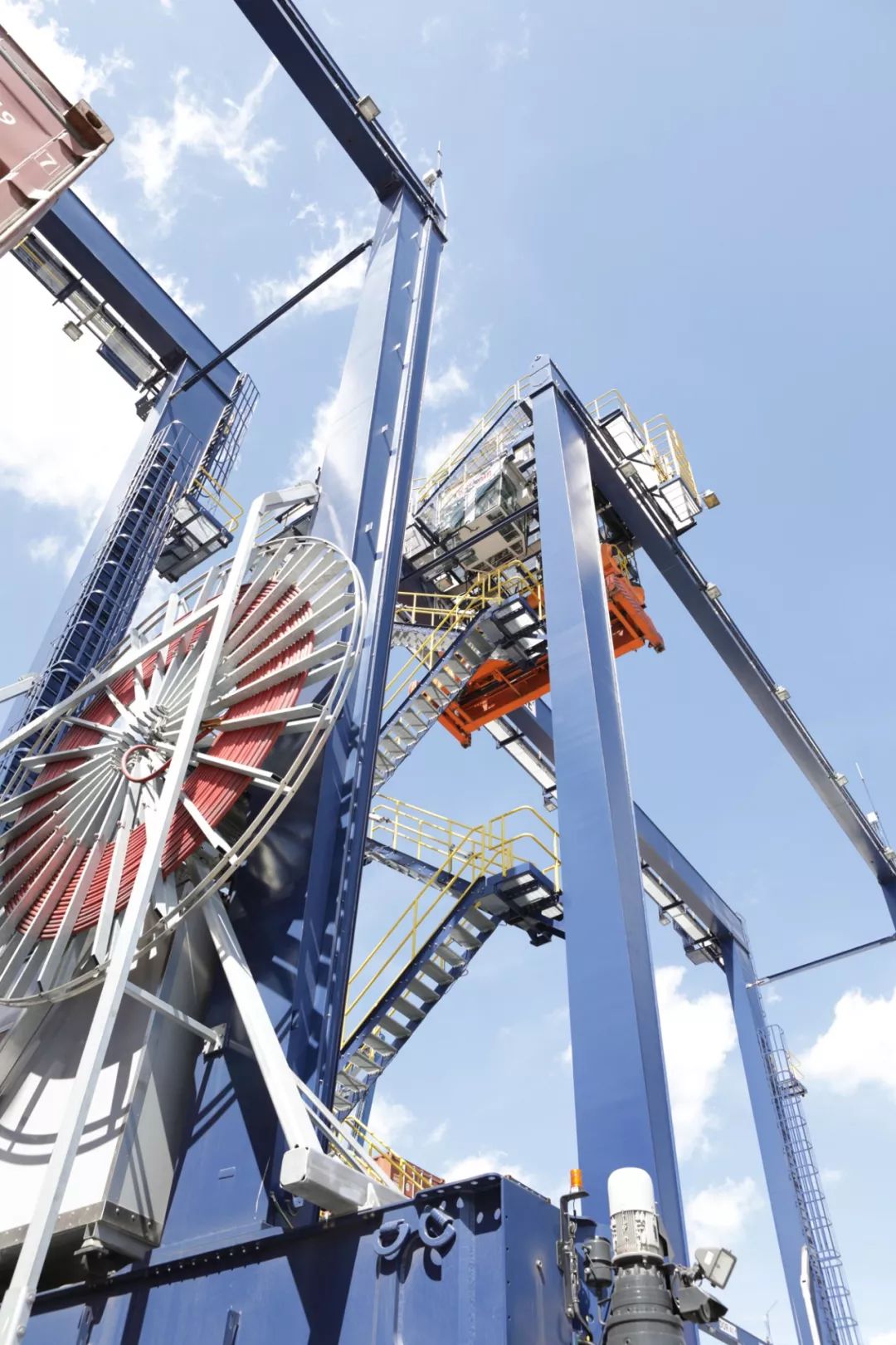 卡尔玛零排放轮胎式龙门吊采用100%电动动力系统,从源头上杜绝了污染物排放和发动机噪音,而且无需使用液压油。与柴油轮胎式龙门吊相比,精简设计意味着维护需求显著降低。