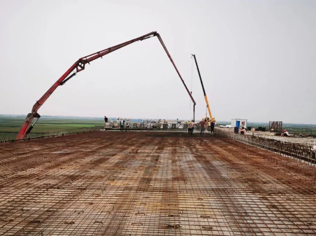 项目施工过程中,混凝土浇筑是最为重要的工作之一。由于黄河滩地质松软、工程混凝土标号大,加之适逢黄河汛期影响施工等一系列问题,设备的稳定和可靠成为影响项目进程的关键因素。在施工方的精挑细选之下,最终选择了由三一泵车完成浇筑任务。