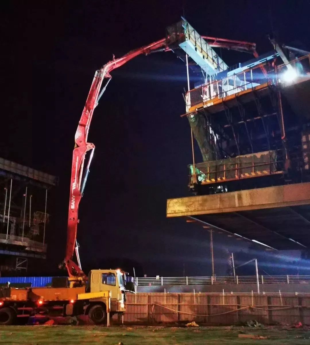 由于工期紧,施工方要求混凝土浇筑工作需要昼夜不停进行。超高的工作强度、超高标号的混凝土不断考验着三一设备稳定性与可靠性,也挑动着服务工程师的神经。一旦设备出现问题影响混凝土浇筑,客户将蒙受巨大损失。在此情形下,倪工暗下决心,确保混凝土浇筑工作万无一失。为此,浇筑期间他24小时驻守在现场,只为第一时间为客户解决问题。依靠着三一设备高效作业和服务工程师的贴心服务,大桥主体工程顺利最终完成浇筑。客户也对三一的设备及售后服务表示极度认可,并表示:“买泵车还是选三一”。