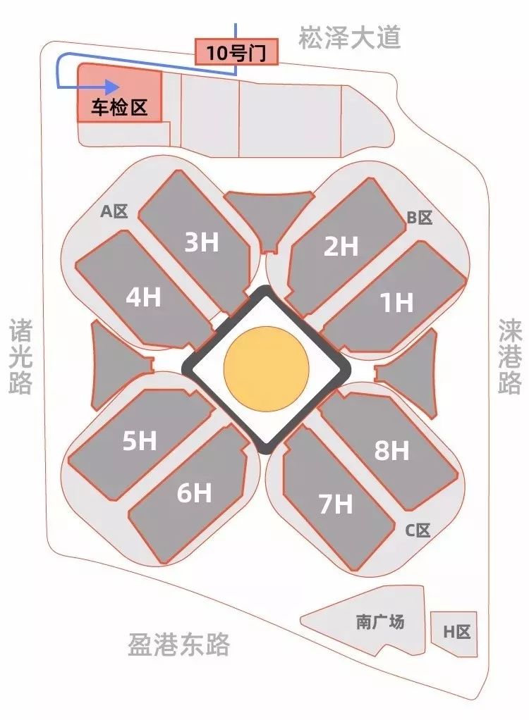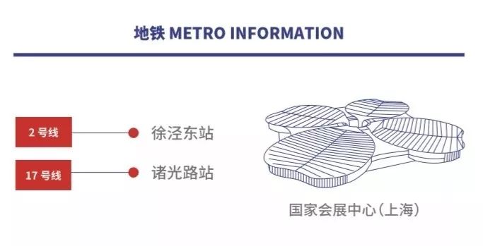 【PS】到达徐泾东站后,从4、5、6、8号口出站至场馆西登录厅入场。根据预测,2号线客流较拥挤,西登录厅入场排队较长,建议市民可选择地铁10号线换乘17号线的方式前往国家会展中心。