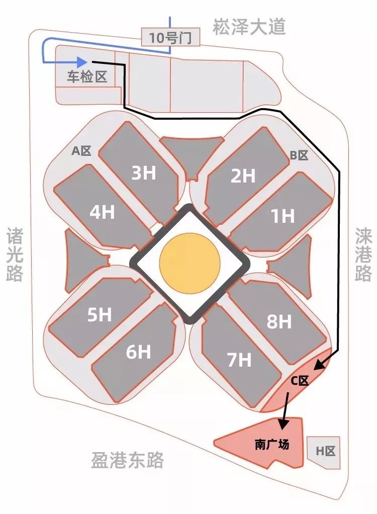 4.南广场停车场:沿国展内部东侧中环,先进入C办公楼停车场,后从停车场内部穿行至南广场停车场。禁带物品