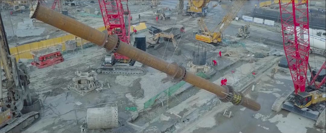 其中钢柱安装是地下空间施工环节中最至关重要的一环,钢柱的稳固决定了整个项目的安全。作为国内目前超深超大直径的钢管柱,在国内来说不仅是首次尝试,对设备和人力而言也是一次不小的挑战。
